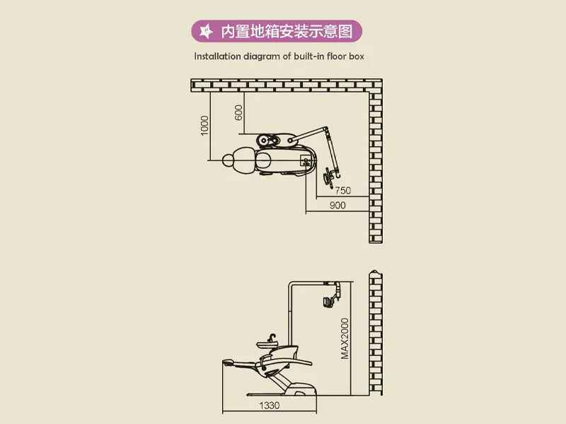 牙椅具有可设置的灯椅联动,冲盂漱口联动等联动功能。